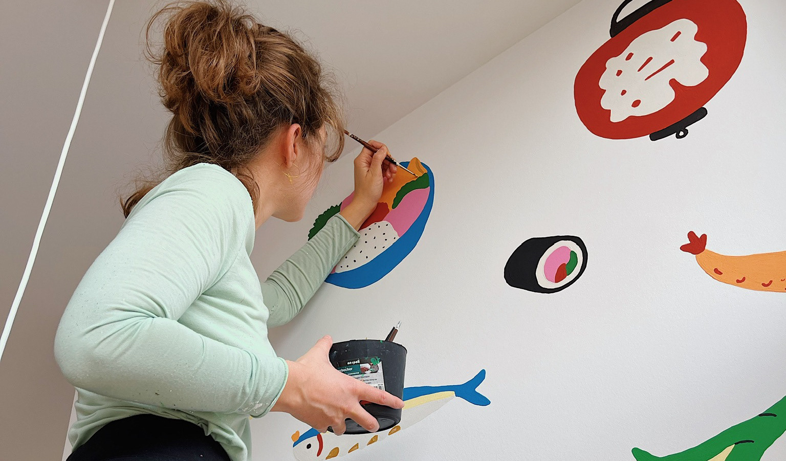 Wall fresco created for the Japanese restaurant Temaki Bar by Kakinuma in Vésenaz, Geneva.