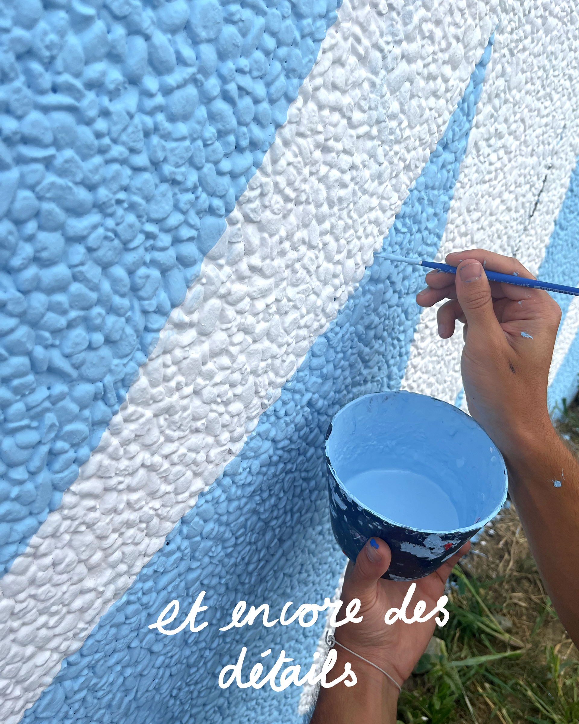 Cette fresque a été réalisée suite à une commande de la Commune de Plan-les-Ouates, qui souhaitait donner vie à un bâtiment des SIG @sig_geneve, à côté du centre sportif des Cherpines. La peinture murale s’étend sur les 4 faces de la borne, pour un total de 25 m², autour du thème du sport. This mural was created following a commission from the Municipality of Plan-les-Ouates, which wanted to bring life to a SIG building next to the Cherpines sports center. The painting covers all four sides of the structure, totaling 25 m², and revolves around the theme of sport.